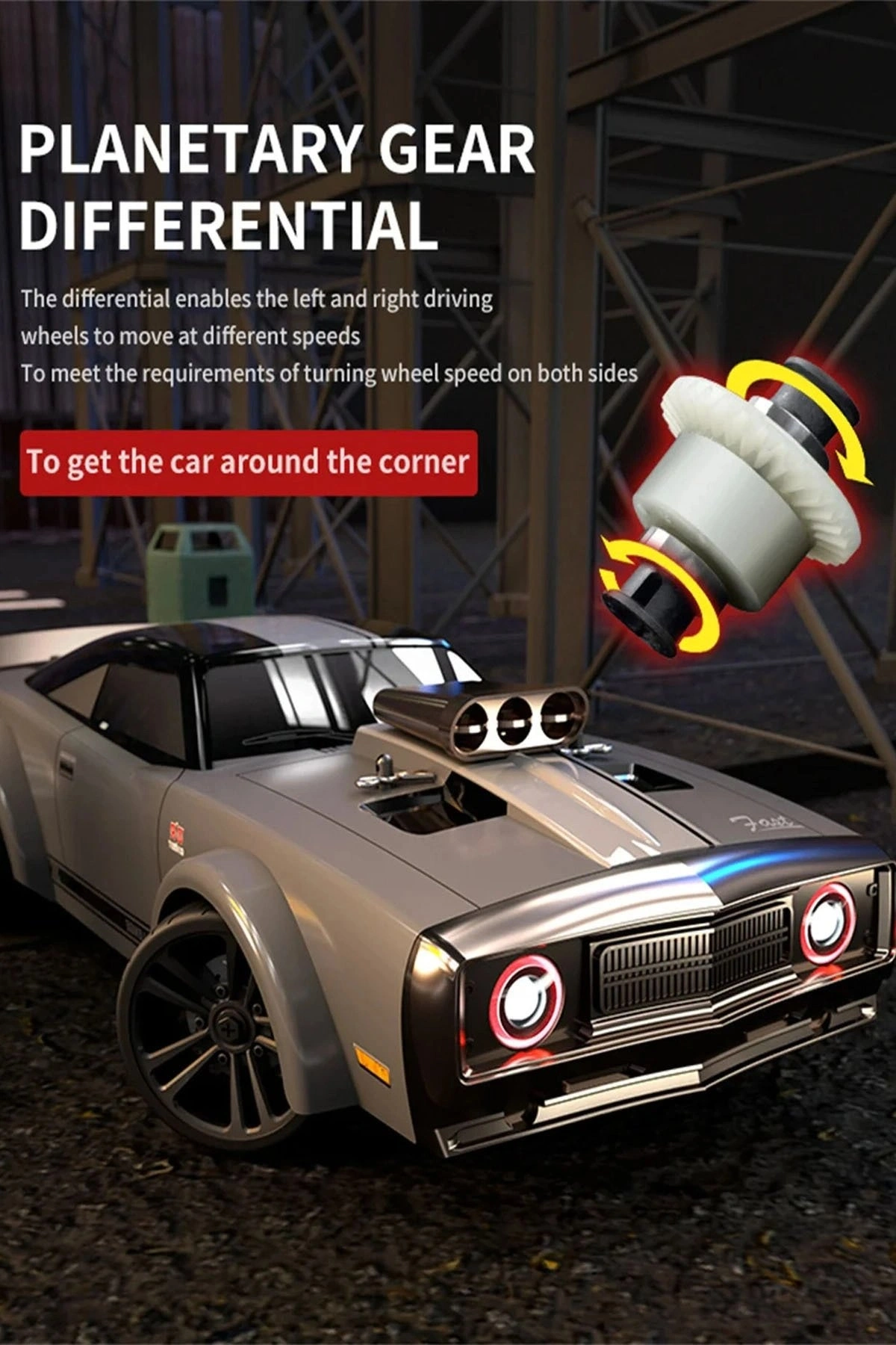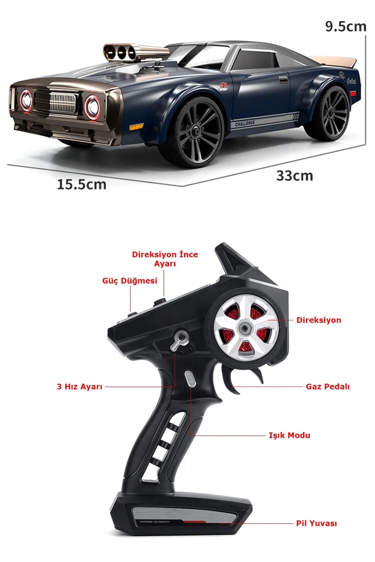 LED ışıkları ile gece sürüşlerinde dikkat çekerken, yedek lastikleri sayesinde farklı zeminlerde uzun süreli kullanım sağlar. Hem çocuklar hem de RC hobi tutkunları için yüksek performanslı bir uzaktan kumandalı araba deneyimi sunar.