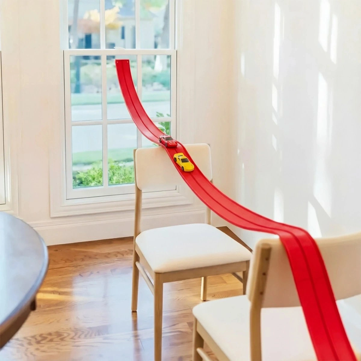 Bu uzun ve esnek pist, sadece hızlı yarışlar için değil, aynı zamanda çocukların hayal güçlerini geliştirerek kendi kurallarını koydukları oyunlar yaratmaları için tasarlanmıştır. Çocuklar her seferinde farklı bir pist düzeni kurarak kendi küçük mühendislik projelerini hayata geçirir.