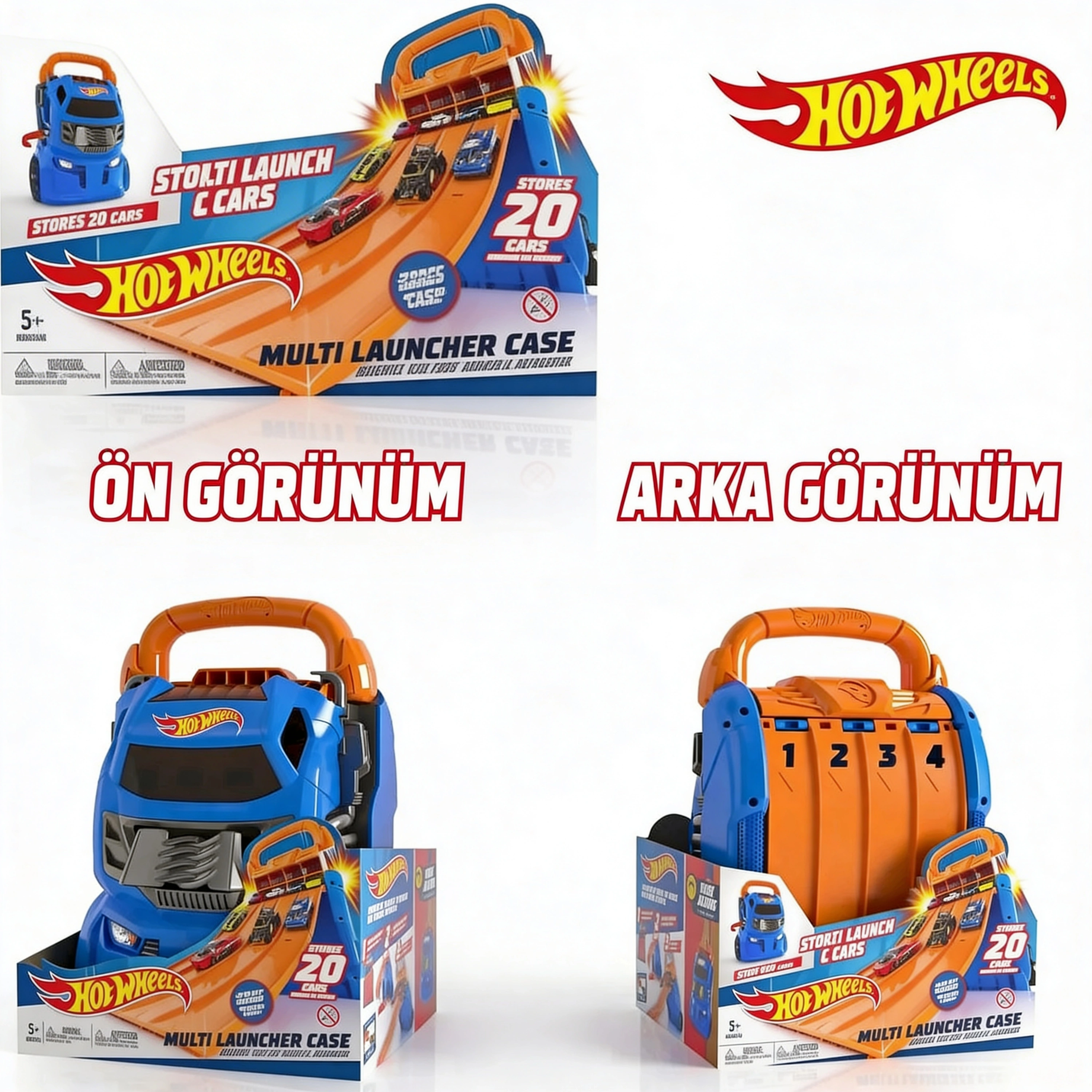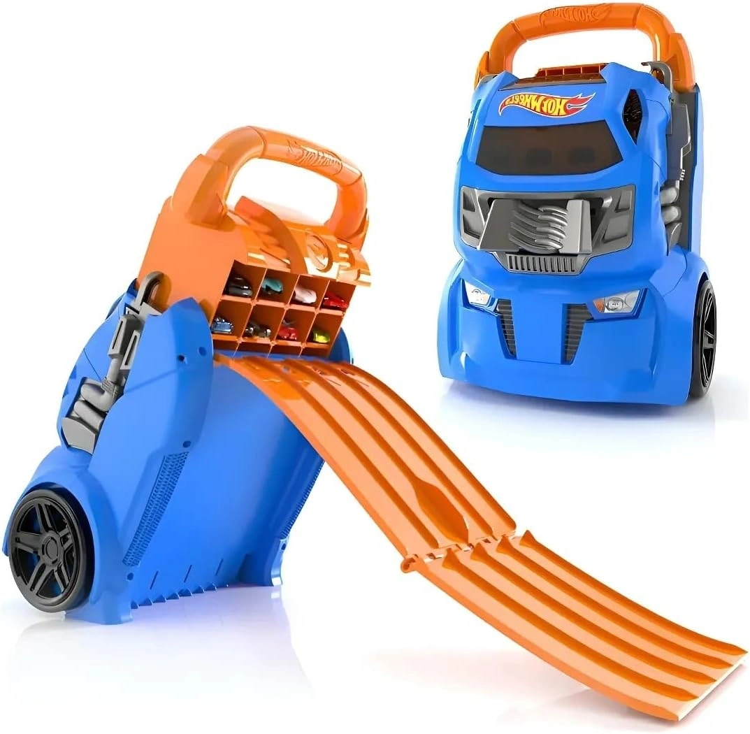 Hot Wheels Multi Launcher Case — 20 adet Hot Wheels arabayı kolayca taşımanızı ve saklamanızı sağlayan, hareketli yarış deneyimi sunan pratik bir oyuncak taşıma ve fırlatma çözümüdür.