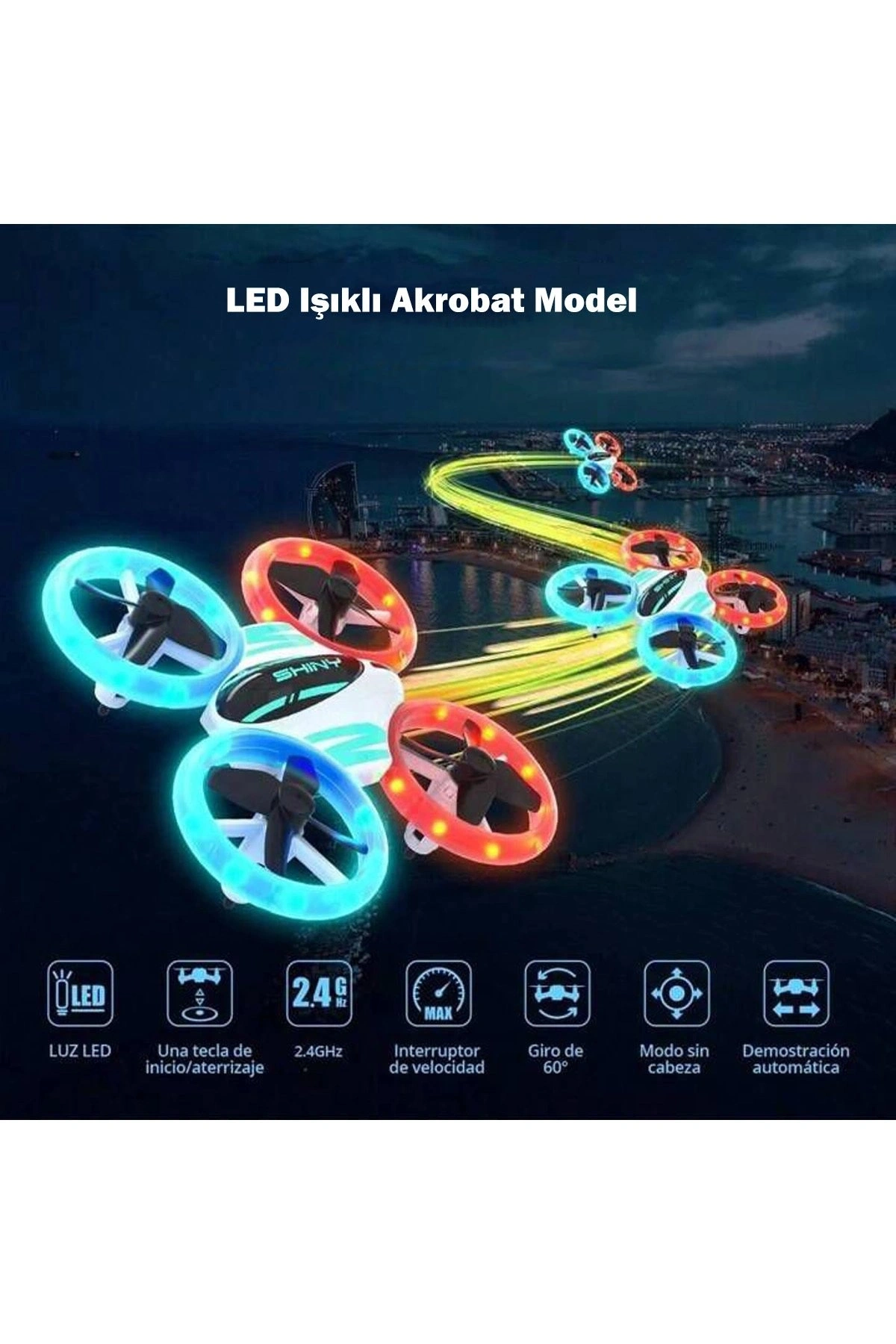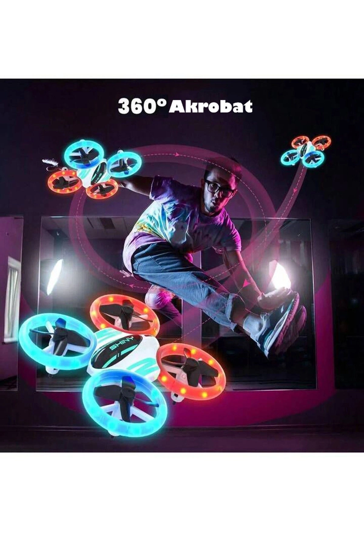 360° HALO Effect Akrobat Full LED Işıklı Drone 2.4GHz Uzaktan Kumanda Kamerasız