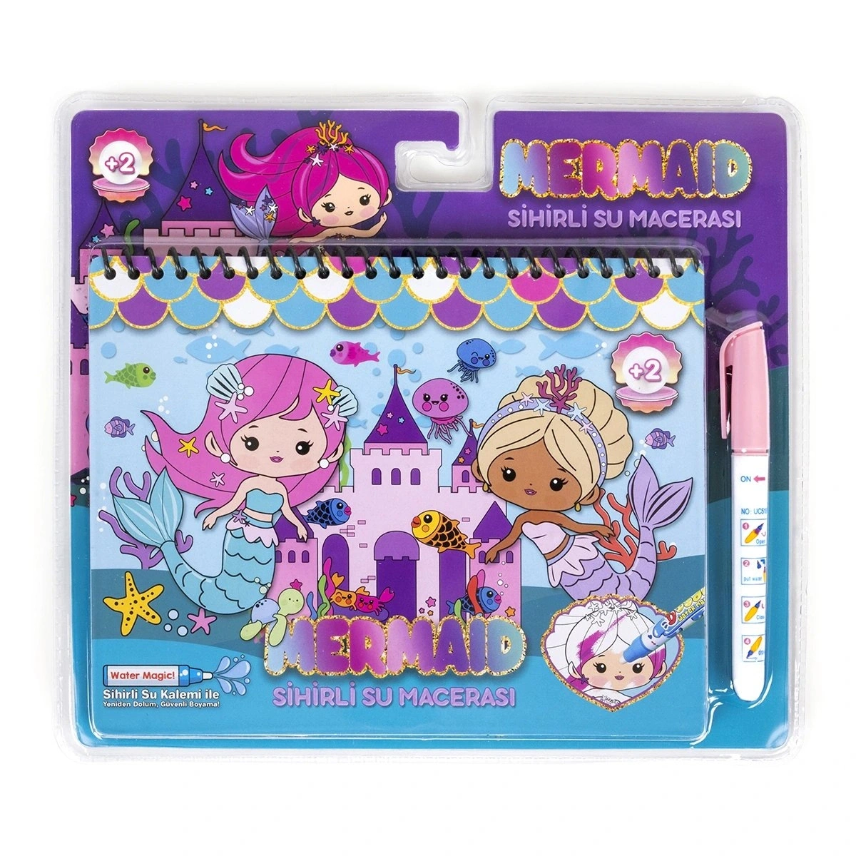 Magic Water Mermaid Sihirli Boyama Kitabı, 2 yaş ve üzeri çocuklar için özel olarak tasarlanmış, eğlenceli ve güvenli bir boyama deneyimi sunar. Bu boyama kitabı, çocukların yaratıcılıklarını keşfetmelerine yardımcı olurken, aynı zamanda ellerindeki kalemle su kullanarak boyama yapmalarına olanak tanır. Kitap, her sayfada bulunan siyah-beyaz çizimler ile çocukların hayal gücünü canlandırır. Kalemle su ile ıslatıldıkça, sayfalarda renkler belirir ve boyama tamamlanmış gibi bir etki yaratır. Sayfalar tamamen kuruduğunda ise eski haline döner, bu da kitabın tekrar tekrar kullanılabilmesini sağlar.