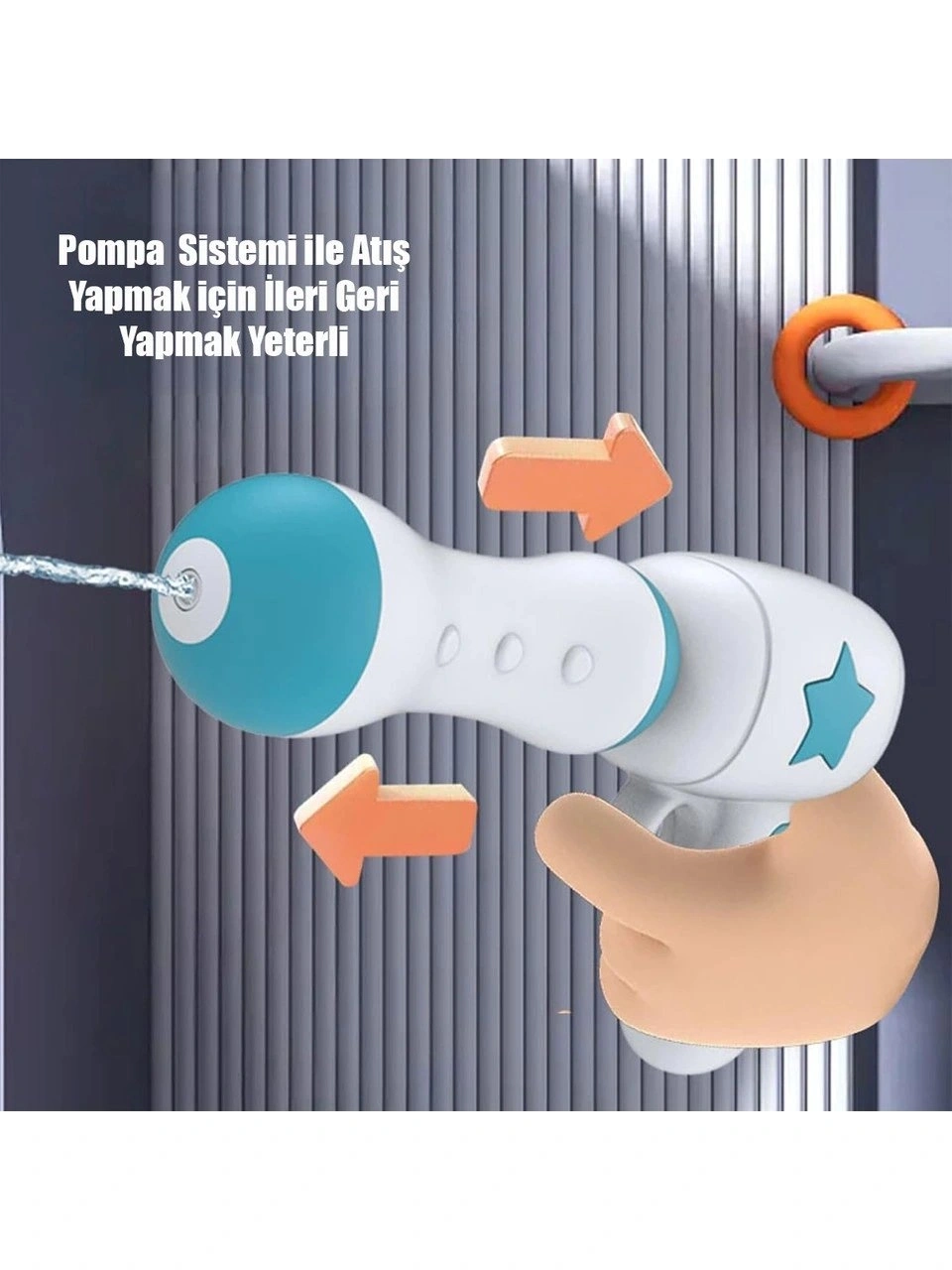 Pompalama yöntemiyle çalışan mekanizma sayesinde çocuklar tabancayı kolayca kontrol edebilir. Basınçlı püskürtme sistemi, yaklaşık 6-8 metreye kadar etkili su atışı sağlar – ister havuzda ister parkta üstün performans!