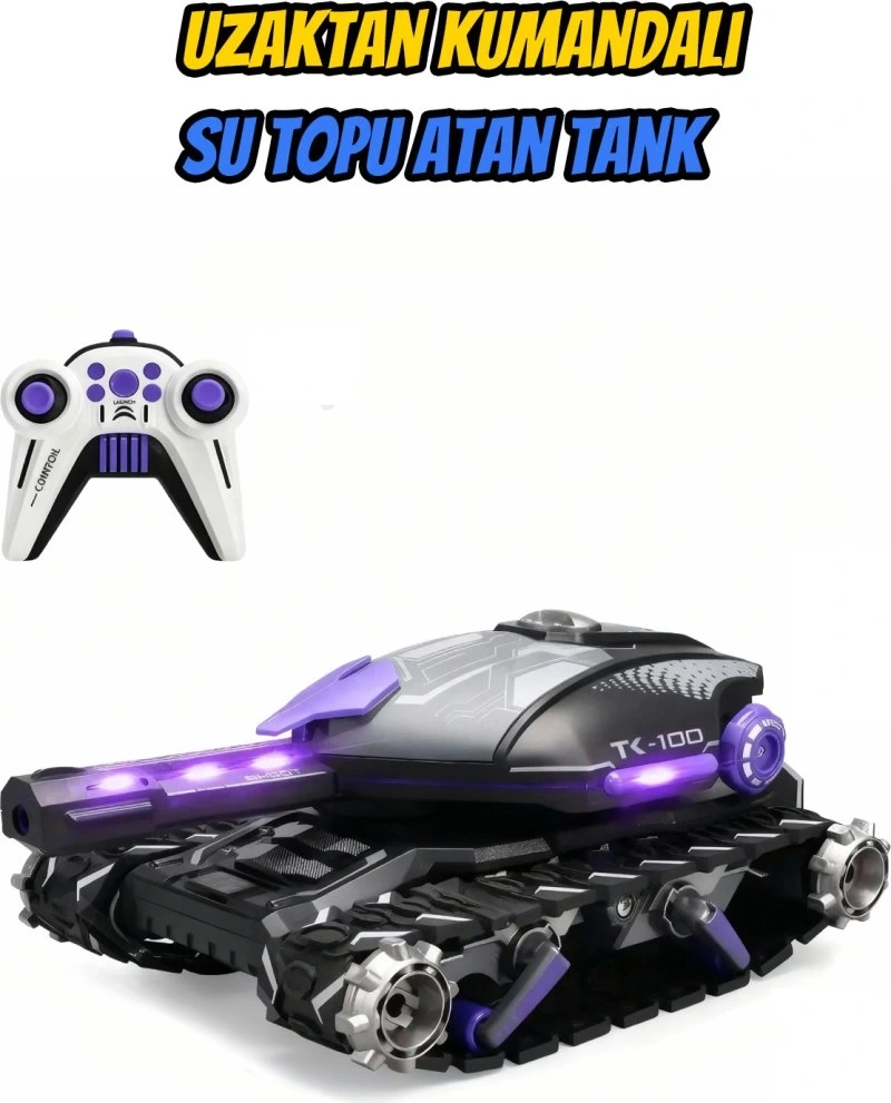 Su Topu Atan Şarjlı 360° 2.4 Ghz Uzaktan Kumandalı Paletli Rc Tank Su topufırlatma, bu uzaktan kumandalı aracın temel işlevidir. Uzaktan kumanda ile yüksek hızlı atışlar yapılabilir. Kutudan çıkan paket, 4 saat suda bekletildikten sonra kullanılan 1000 su bombası içerir. Güçlü paletli su bombası tankı, son derece akıcı hız ve kontrol sunar. Dahili güçlü motoru sayesinde RC tankımız, sahilde, betonda, çimende, taş yolda ve hatta 45° eğimde bile kolayca kullanılabilir. Uzaktan kumandalı araba, top atışı, 360° kayma, müzik değiştirme, eylemleri programlama, otomatik gösteri, sol ve sağ taraf kaydırma, ses kontrolü, 2.4G uzaktan kumanda ve diğer yeni işlevler için kullanılabilir. Üst düzey renk şemasına sahip gövde tasarımı ve havalı LED ışıkları, bu uzaktan kumandalı arabayı oldukça etkileyici kılıyor. Çok oyunculu spor eğlencesi için uygun olan bu araçla çocuklarınızla oynayabilir, askeri tatbikatları ve savaş maceralarını simüle edebilirsiniz.