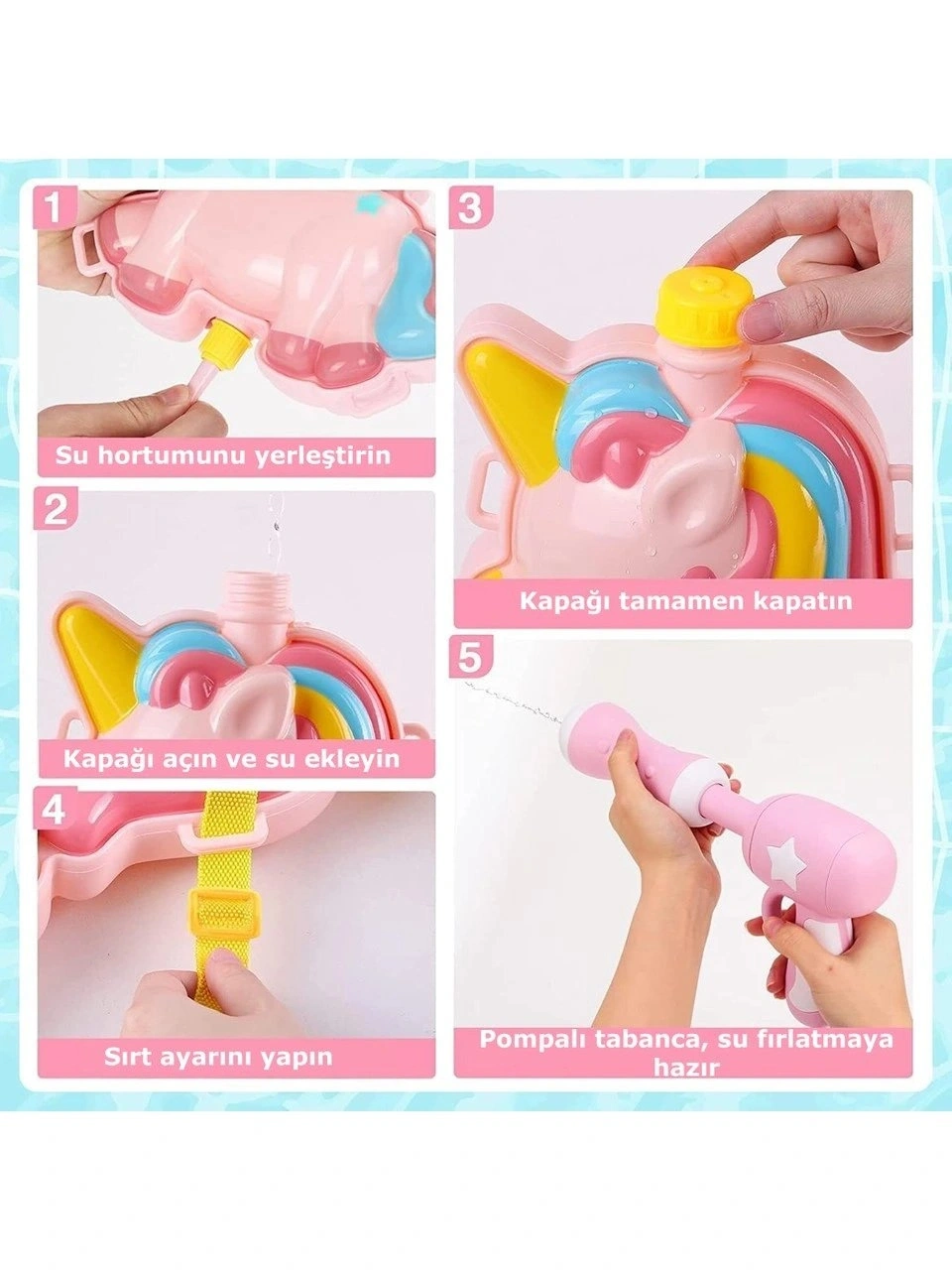 Yazın en eğlenceli yeni oyun arkadaşıyla tanışın! Sevimli tasarımları ve güçlü su püskürtme özelliğiyle çocukların favorisi olmaya aday bu sırt çantalı su tabancaları, hem eğlendiriyor hem de serinletiyor. Birçok dikkat çekici temasıyla sunulan bu ürünler, çocukların hayal gücünü desteklerken aktif oyunlar için de mükemmel bir deneyim sunar.